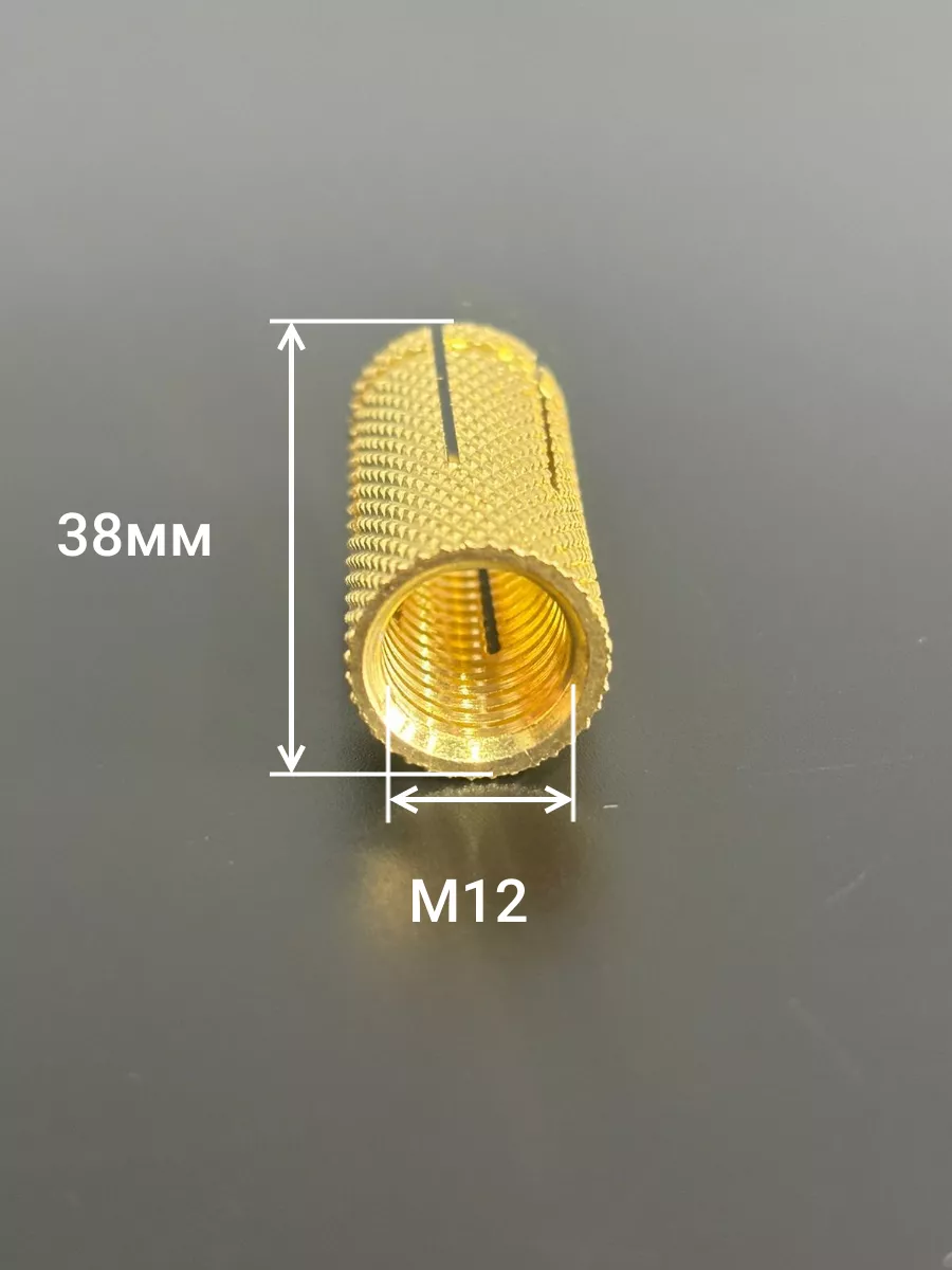 Представляет собой простейшую и надежную конструкцию. Это небольшая втулка из латуни покрытая нарезкой для лучшего сцепления со стеной. Та часть, которая расположена в глубине отверстия, имеет деление на четыре сегмента. Эти сегменты предназначены для обеспечения надежного распора и крепления в теле стены.