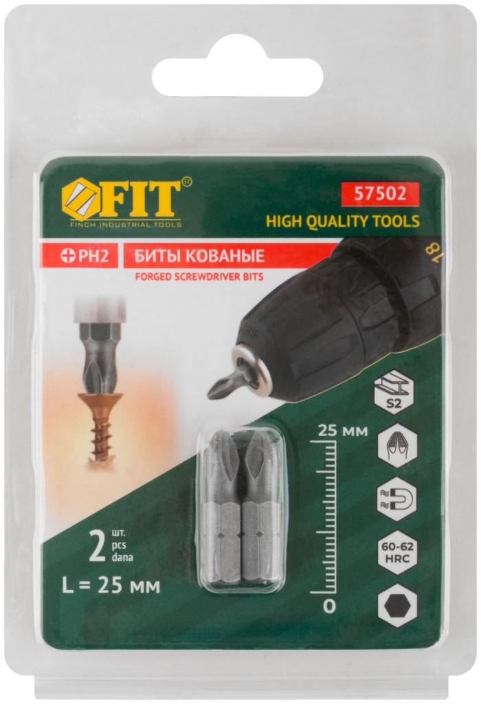 | Биты кованые, сталь S2, одностор. 50 мм РН2, 2шт. Профи, блистер | 57505 | 1 шт. |