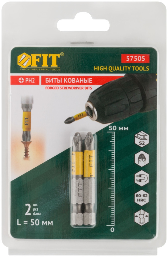 | Биты кованые, сталь S2, одностор. 25 мм РН2, 2шт. Профи, блистер | 57502 | 1 шт. |