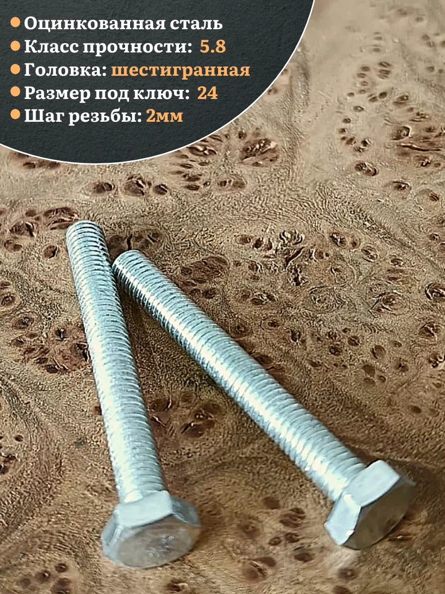 Имеет шпильку с полной резьбой и шестигранную голову. Длина болта определяется по длине шпильке. Стандартный класс прочности для болтов от 4,8 до 5,8. Самый распространенный вид болтов применяется совместно с гайками и шайбами.