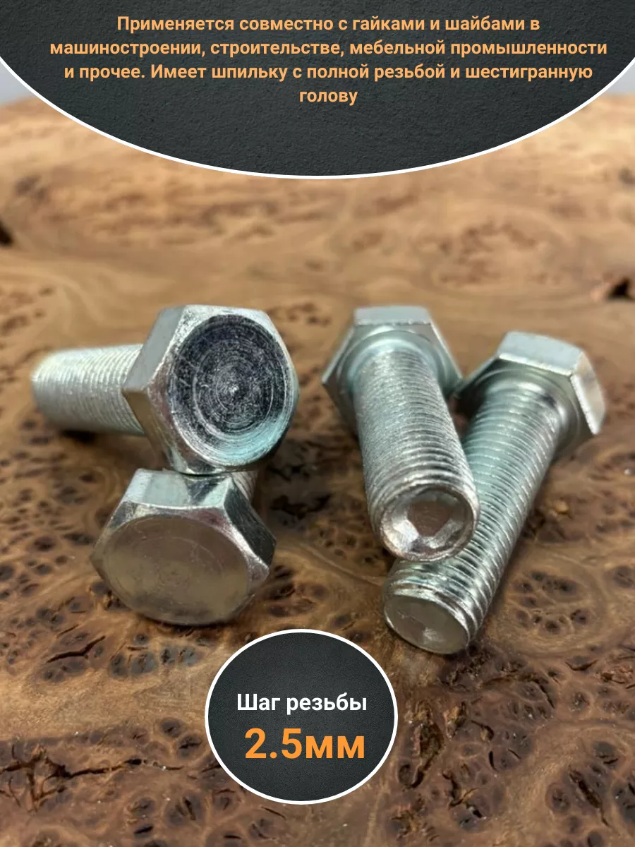 Имеет шпильку с полной резьбой и шестигранную голову. Длина болта определяется по длине шпильке. Стандартный класс прочности для болтов от 4,8 до 5,8. Самый распространенный вид болтов применяется совместно с гайками и шайбами.