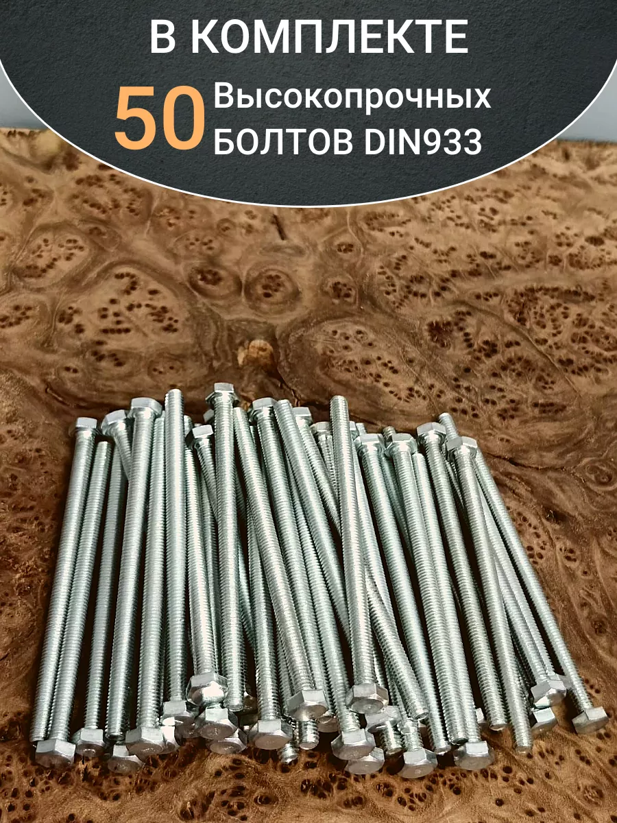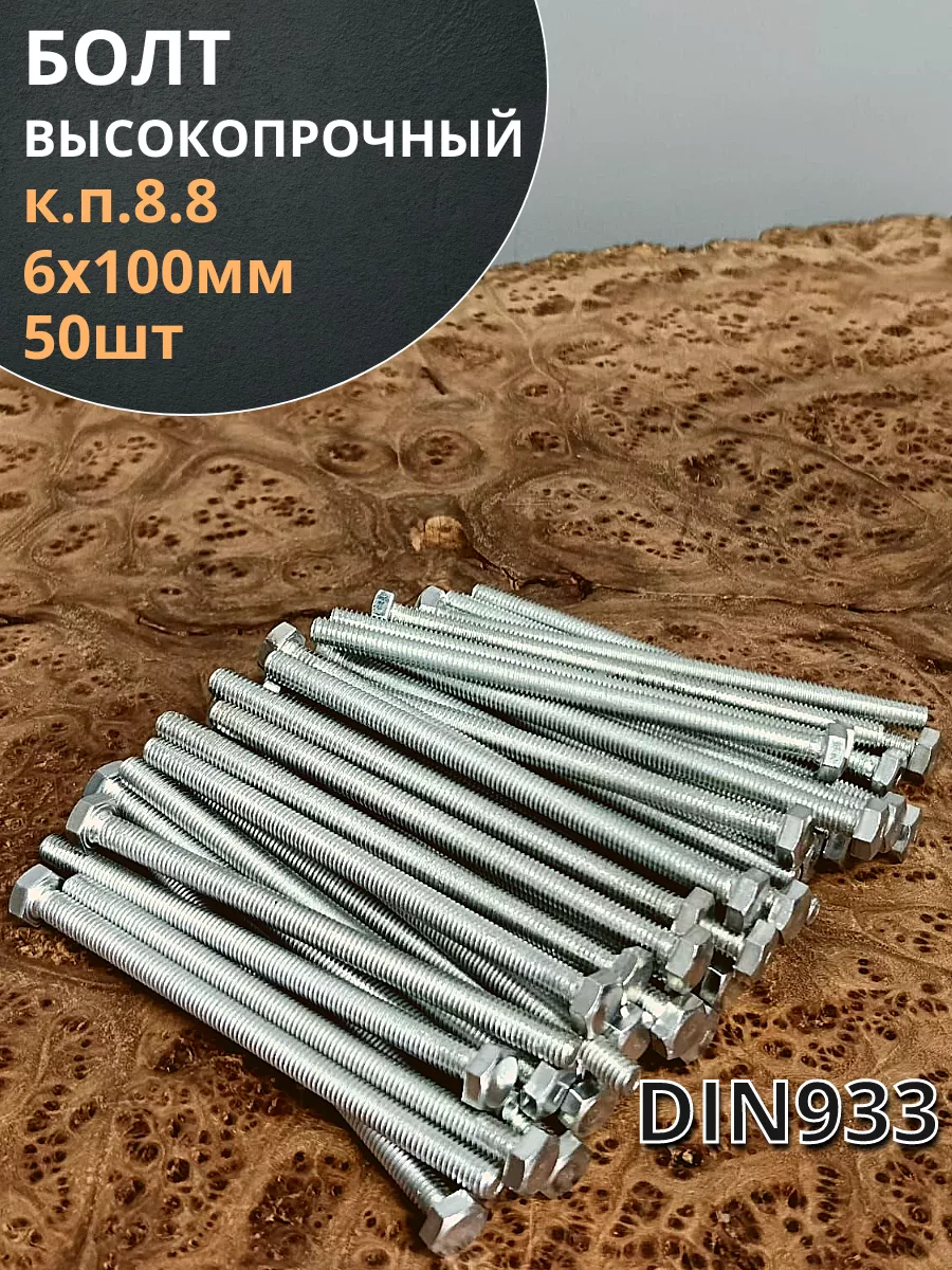 Болт 6х100 мм полная резьба ОЦ DIN933 к.п.8.8 (50 шт.)