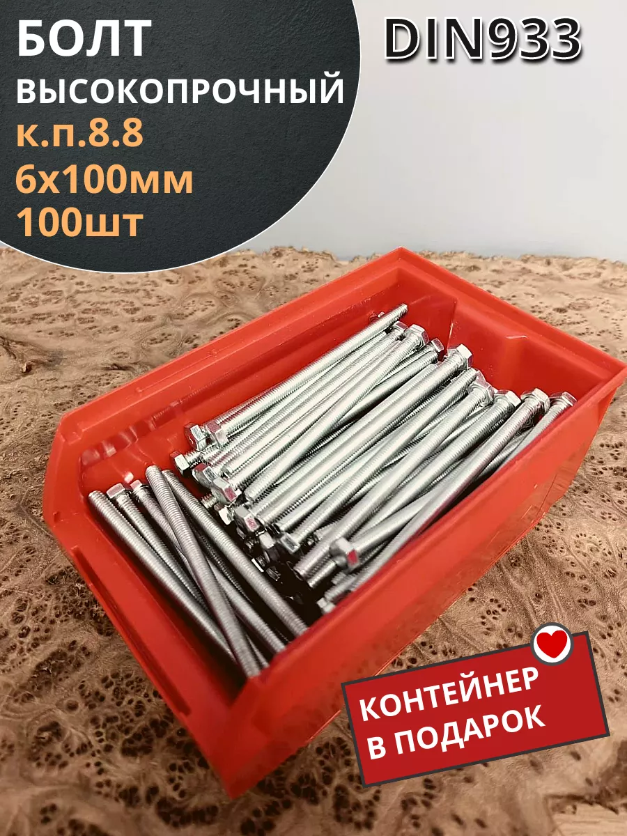 Болт 6х100 полн. резьба ОЦ DIN933 к.п.8.8 (100шт) контейнер
