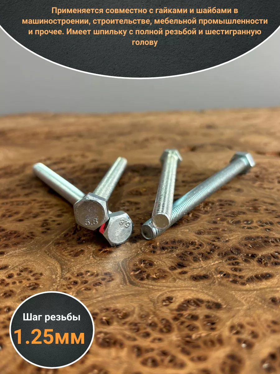 Область применения: Ремонтно-строительные работы, монтажные операции, производство станочного оборудования, автомобилей, дорожной и сельскохозяйственной техники, приборов, сборка металлоконструкций не могут обойтись без применения стальных болтов, соответствующих DIN 933. Изделие сделано из оцинкованной стали. Чтобы получить с помощью болта надежное резьбовое соединение, его применяют в сочетании с гайкой и шайбами либо делают в деталях сквозные, глухие резьбовые отверстия. Крепеж состоит из стержня цилиндрической формы с полной резьбой М8 и шестигранной шляпки. Последний элемент предназначен для передачи от инструмента изделию момента затяжки в процессе закручивания.