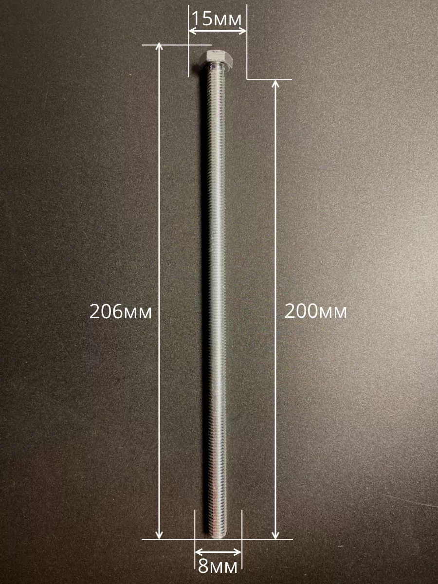 Болт 8х200 мм полная резьба ОЦ DIN933 к.п.8.8 (5 шт.)