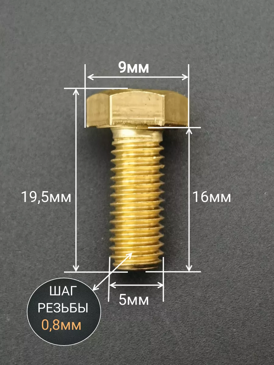 Болт латунный М5х16 DIN933,10 шт