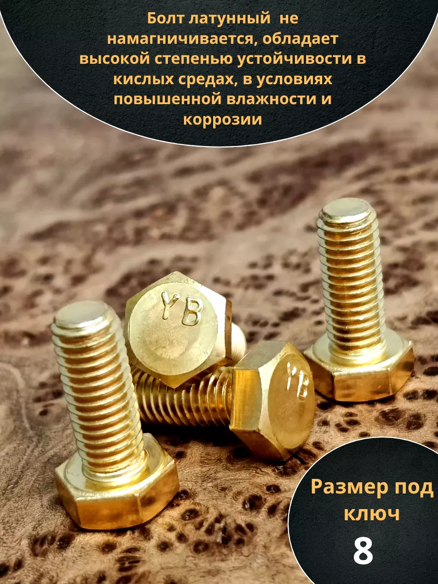 Токопроводящий, немагнитный крепеж с высокой коррозионной стойкостью (сравнимой с медью) на воздухе, во влажной среде и соленой воде. Изготовлен из высококачественного латунного сплава Л63 с оптимальным сочетанием прочности и пластичности.