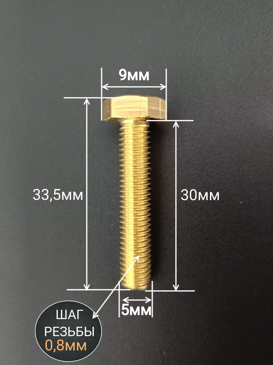 Болт латунный М5х30 DIN933,10 шт