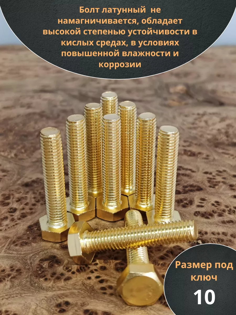 Болт латунный М6х30 DIN933,10 шт