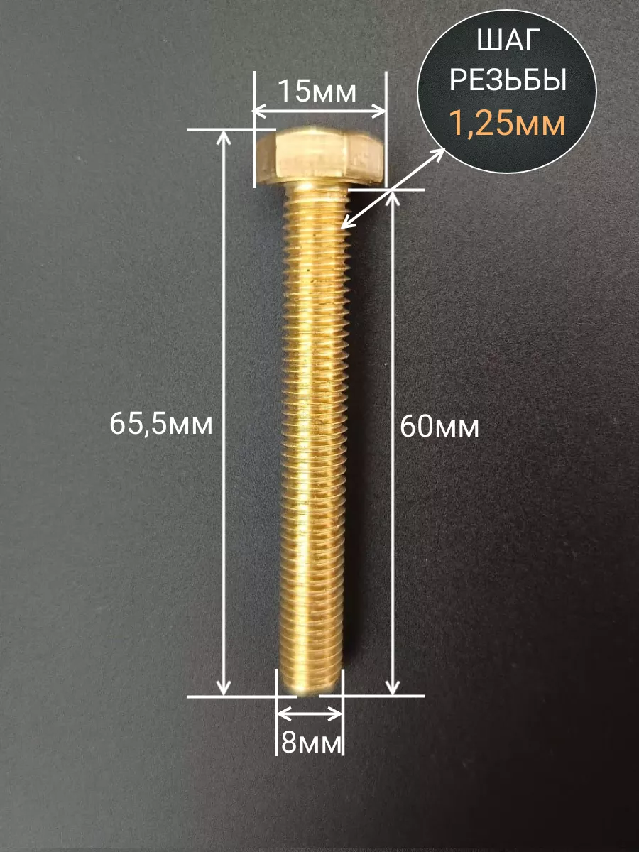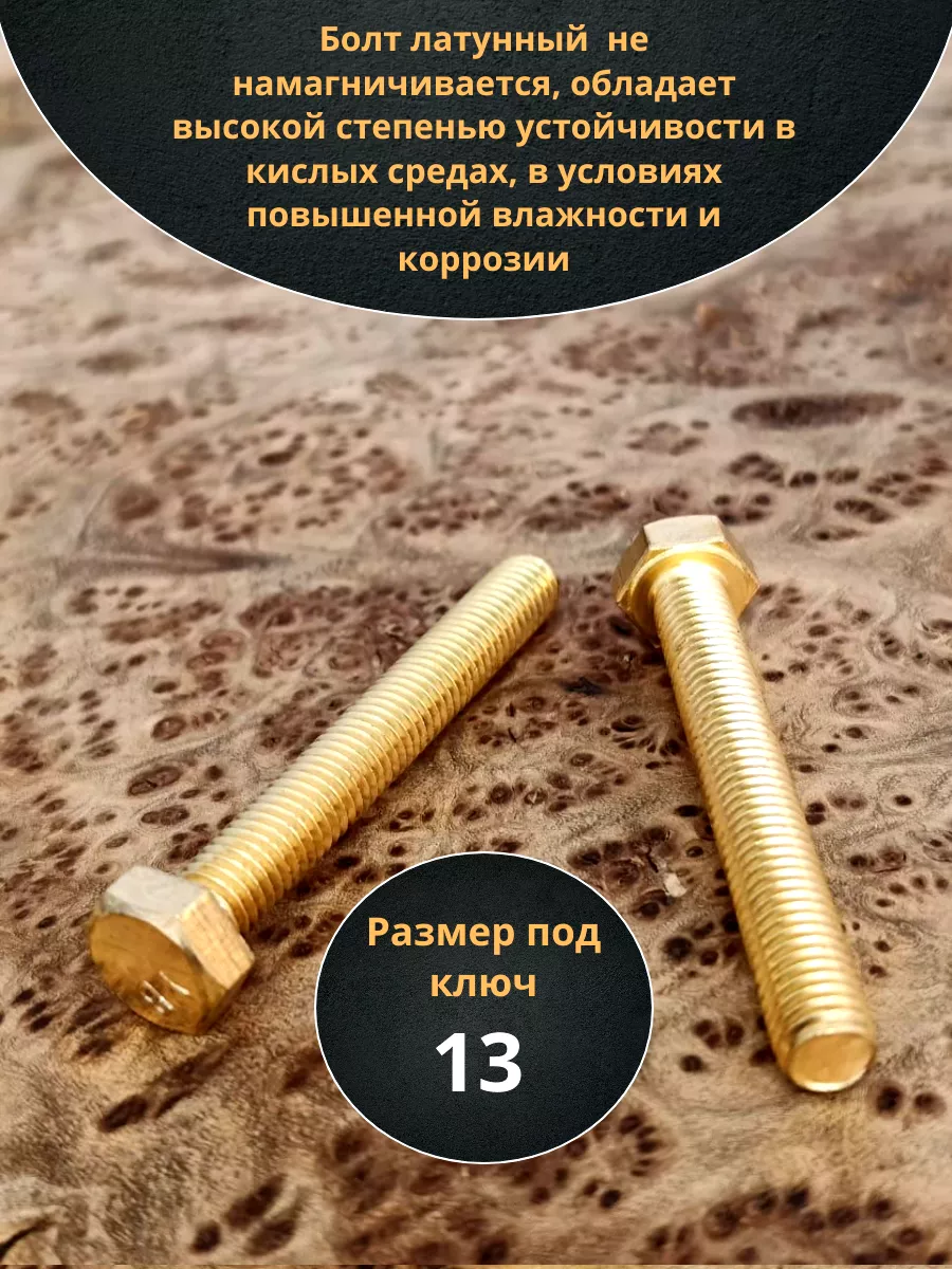 Болт латунный М8х60 DIN933,10 шт