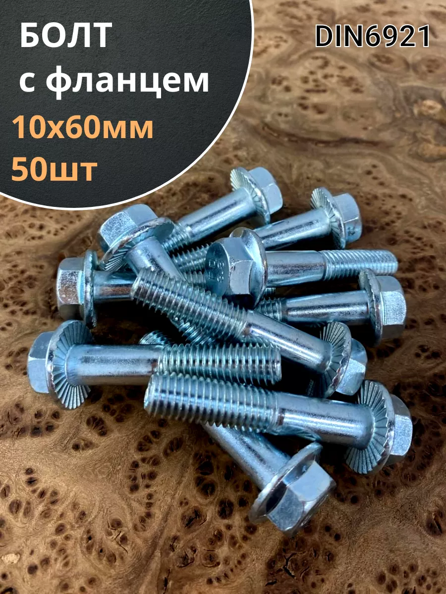 Болт М10х60 с фланцем к.п.8.8 ОЦ DIN6921, (50 шт.)