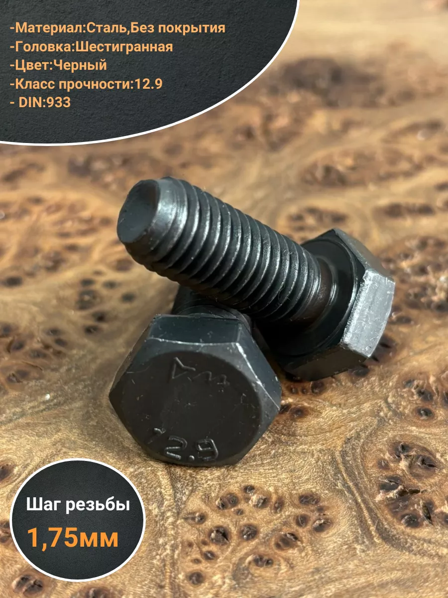 Болт высокопрочный 12х35 мм, DIN933, к.п. 12.9 черный, 2шт.