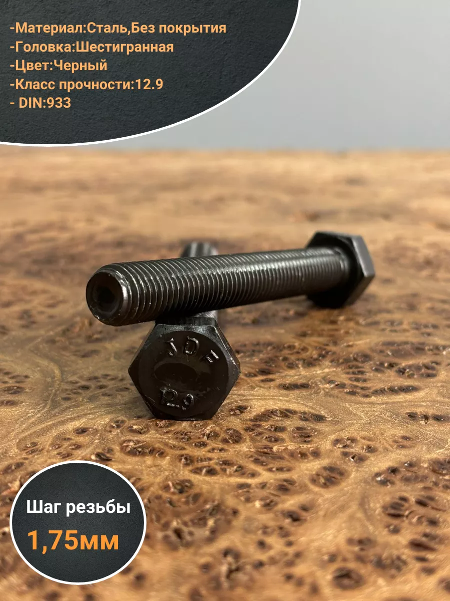 Болт высокопрочный 12х80 мм, DIN933, к.п.12.9 черный, 2шт.