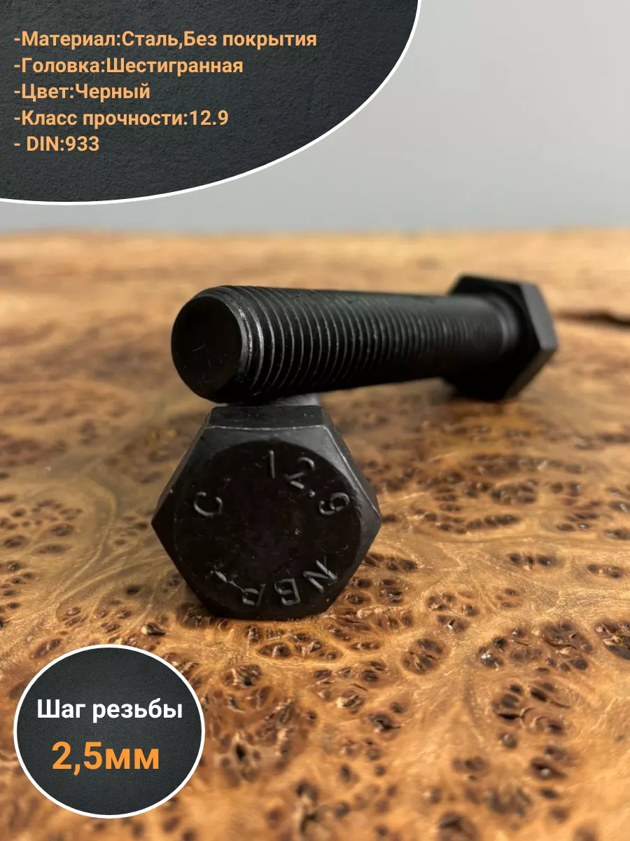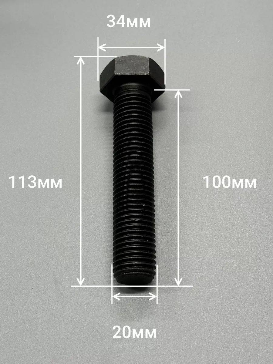 Болт высокопрочный 20х100 мм, DIN933, к.п.12.9 черный , 2 шт