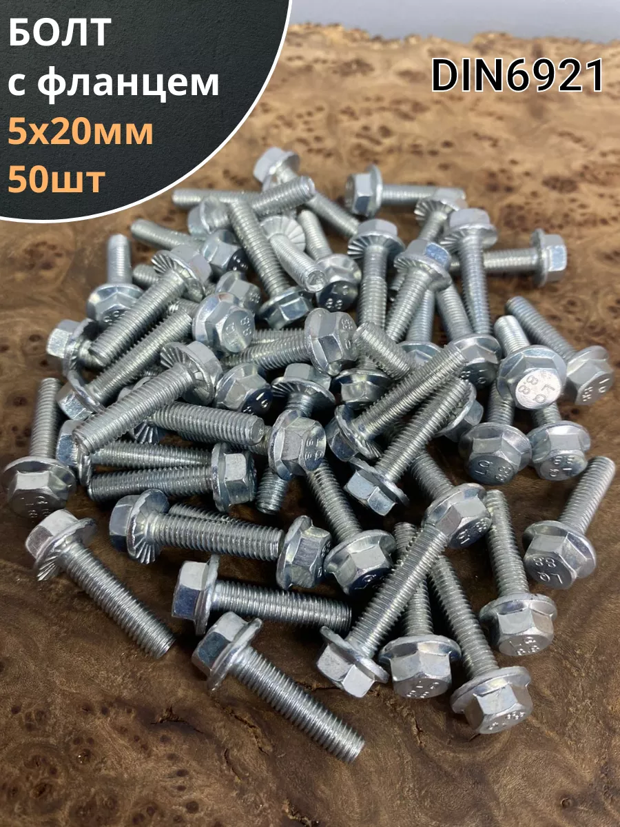 Болт М5х20 с фланцем к.п.8.8 ОЦ DIN6921, (50 шт.)