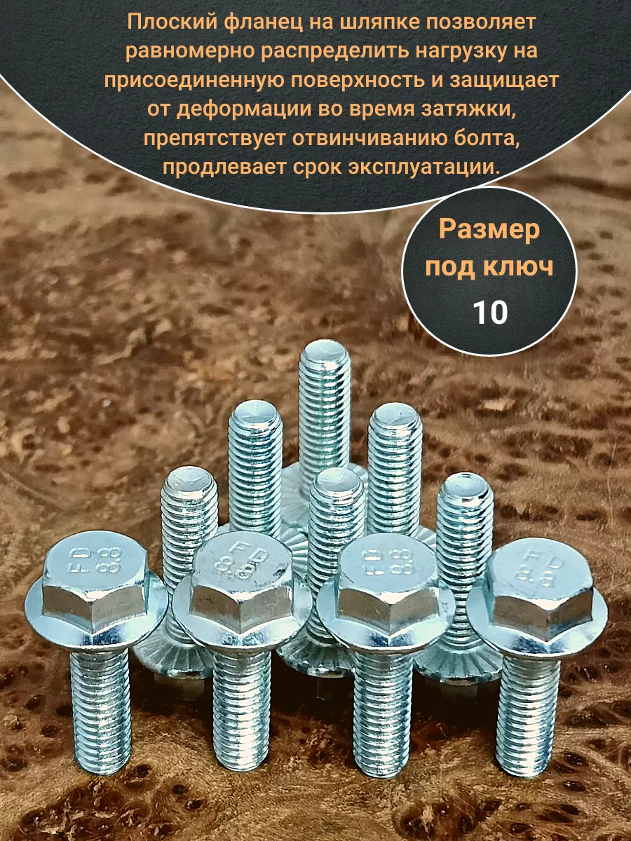 Болт М6х10 с фланцем к.п.8.8 ОЦ DIN6921, (500 шт.)