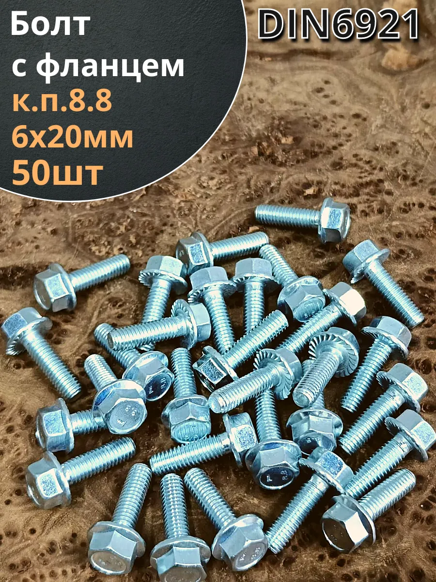 Болт М6х20 с фланцем к.п.8.8 ОЦ DIN6921, (50 шт.)