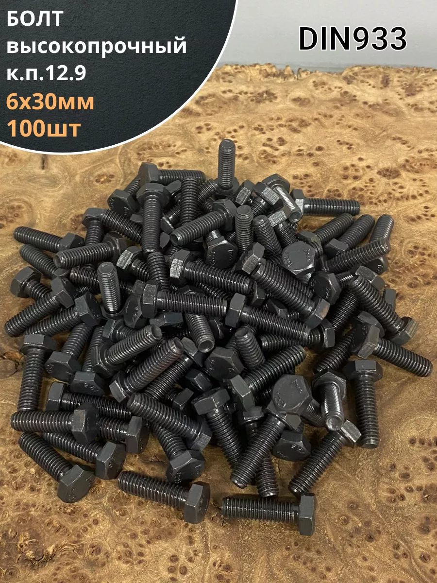 Болт М6х30 мм, DIN933, высокопрочный 12.9, 100шт.