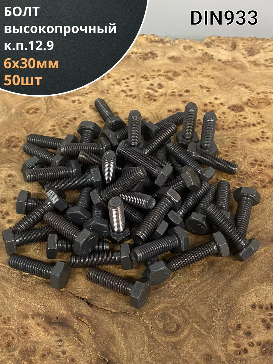 Болт М6х30 мм, DIN933, высокопрочный 12.9, 50шт.