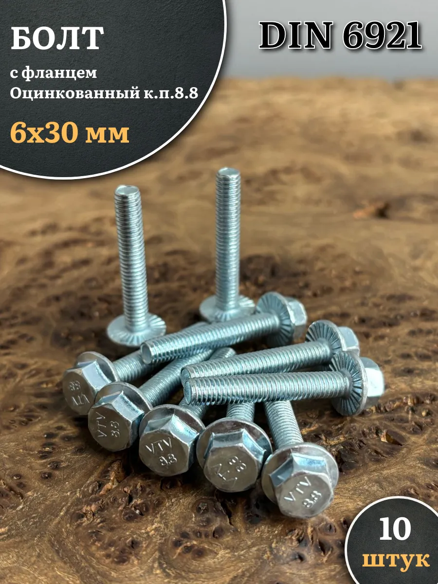 Болт М6х30 с фланцем к.п.8.8 ОЦ DIN6921, (10 шт.)