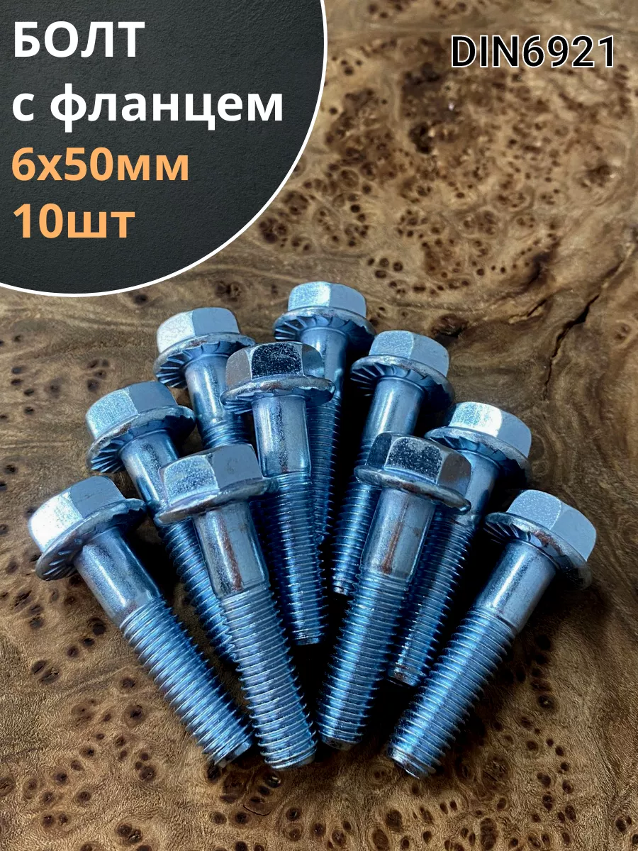 Болт М6х50 с фланцем к.п.8.8 ОЦ DIN6921, (10 шт.)