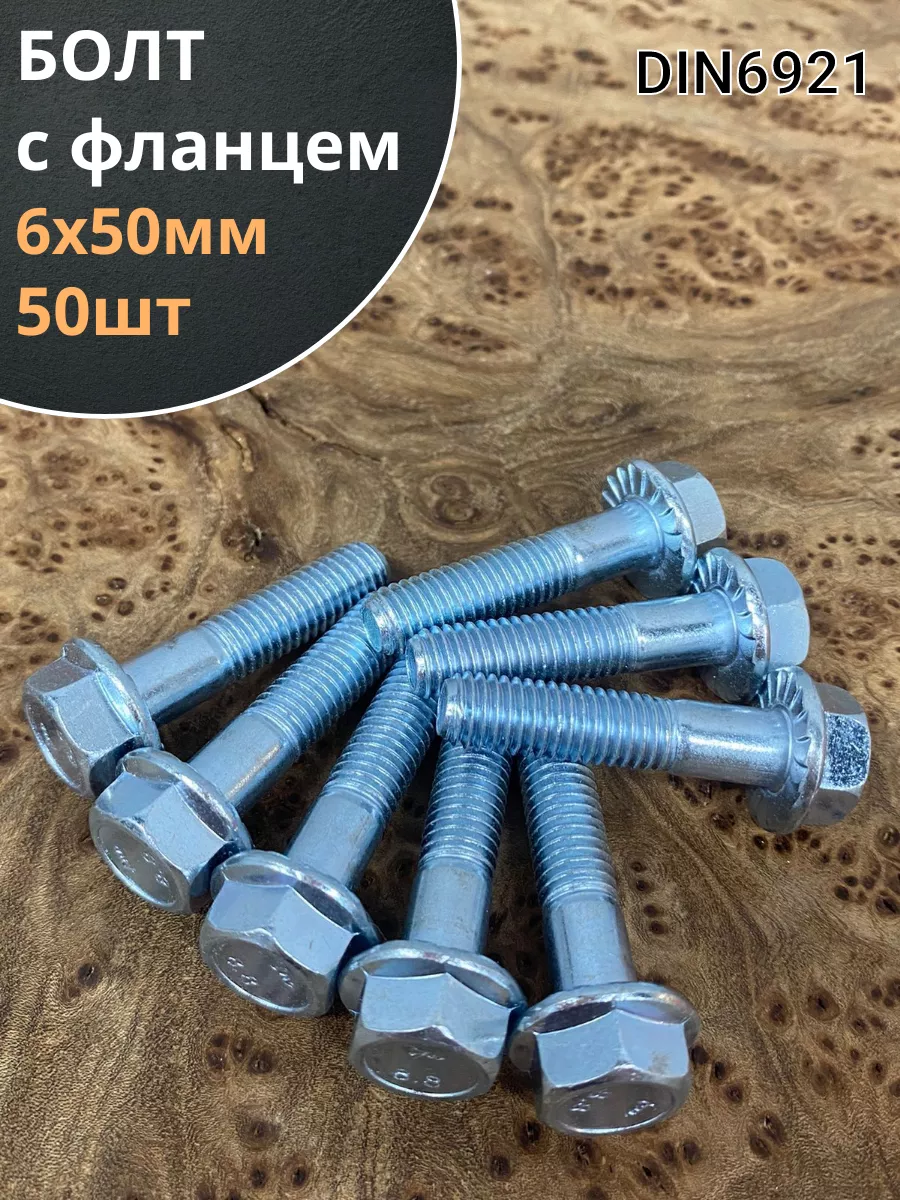 Болт М6х50 с фланцем к.п.8.8 ОЦ DIN6921, (10 шт.) П0000020231 1 шт.