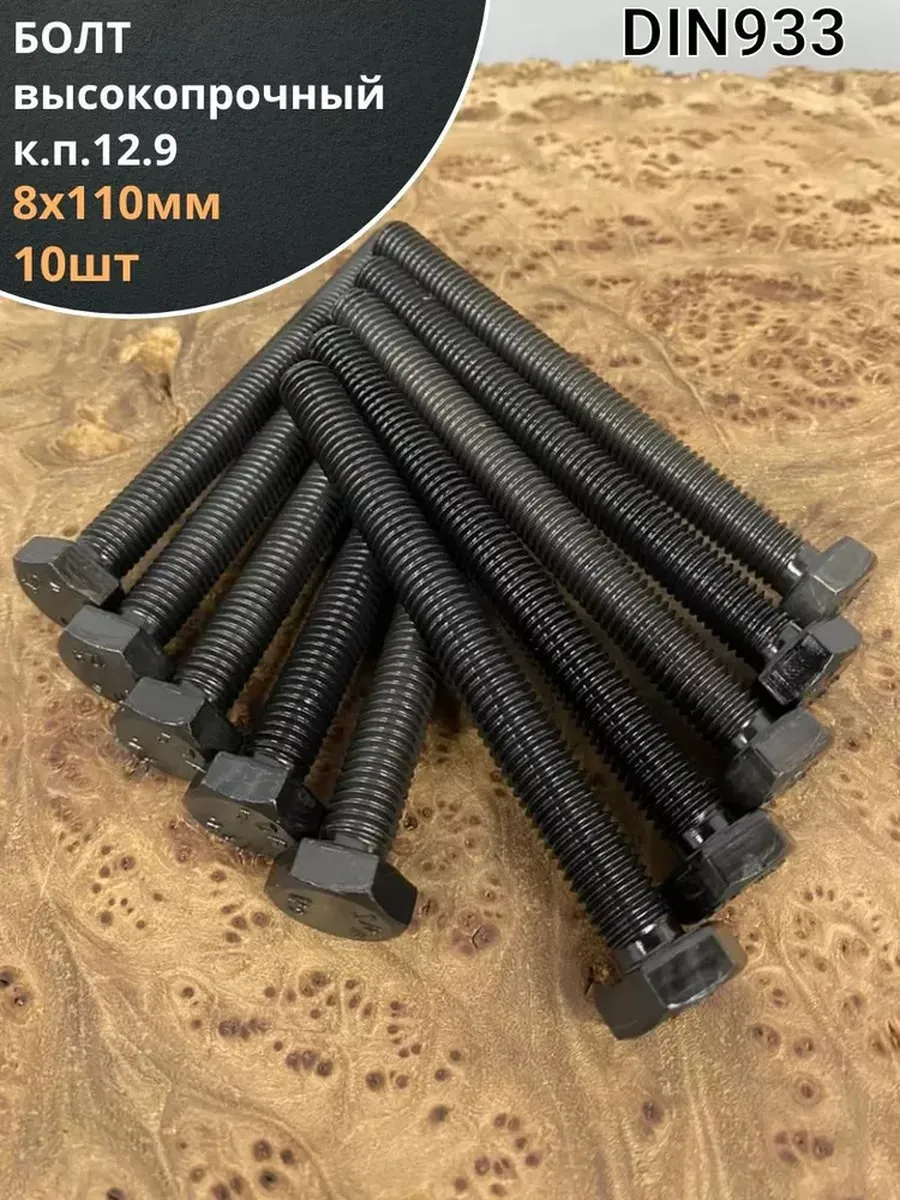 Болт М8х110 мм, DIN933, высокопрочный к.п. 12.9, 10шт.