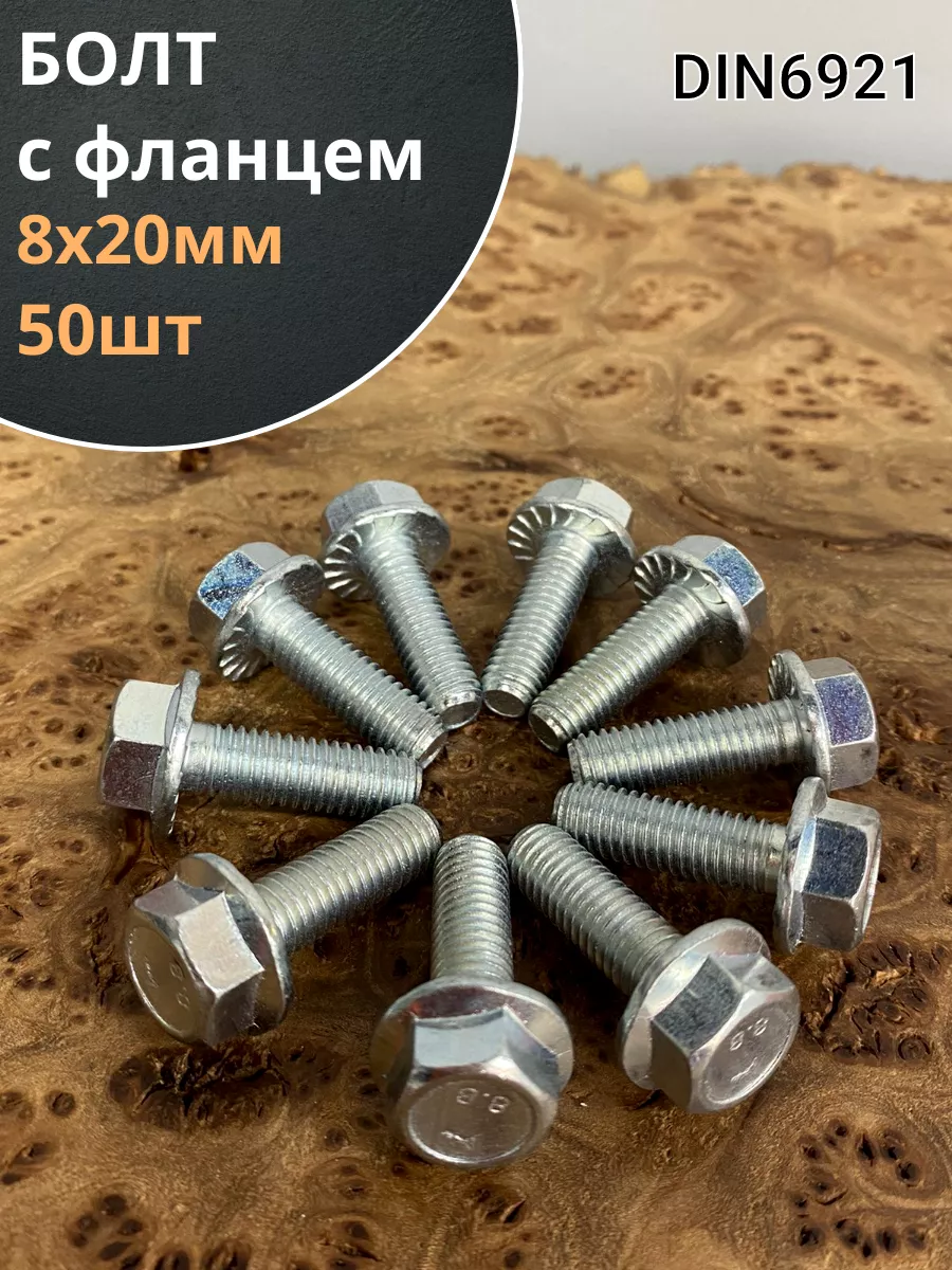 Болт М8х20 с фланцем к.п.8.8 ОЦ DIN6921, (50 шт.)