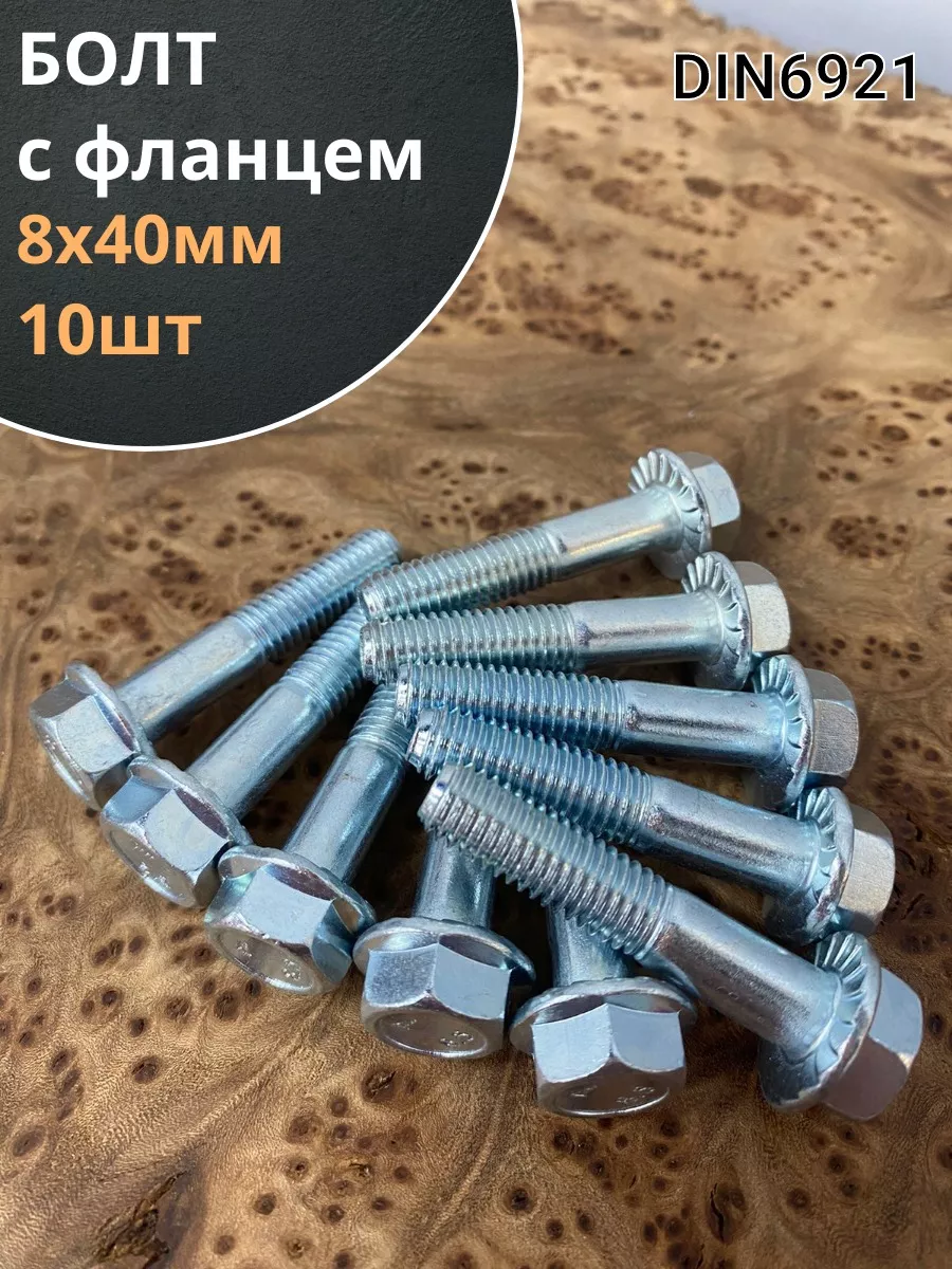 Болт М8х40 с фланцем к.п.8.8 ОЦ DIN6921, (10 шт.)