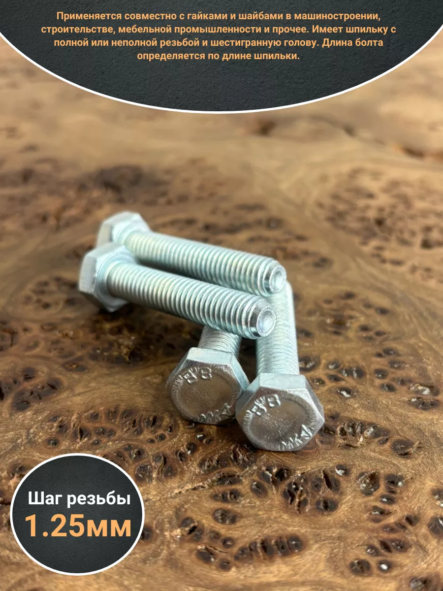 Применяется совместно с гайками и шайбами в машиностроении, строительстве, мебельной промышленности и прочее. Имеет шпильку с полной или неполной резьбой и шестигранную голову. Длина болта определяется по длине шпильки.