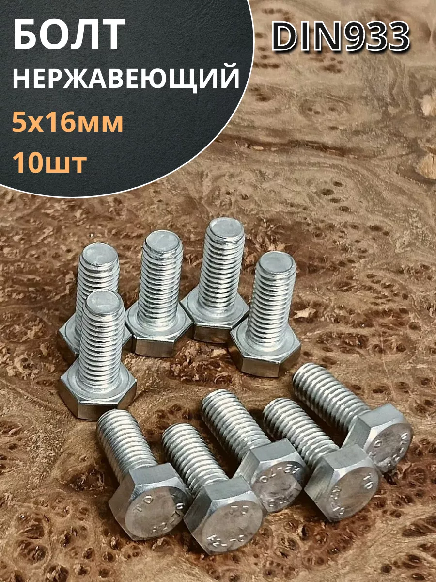 Болт нержавеющая сталь М5х16 А2 DIN933 10 шт
