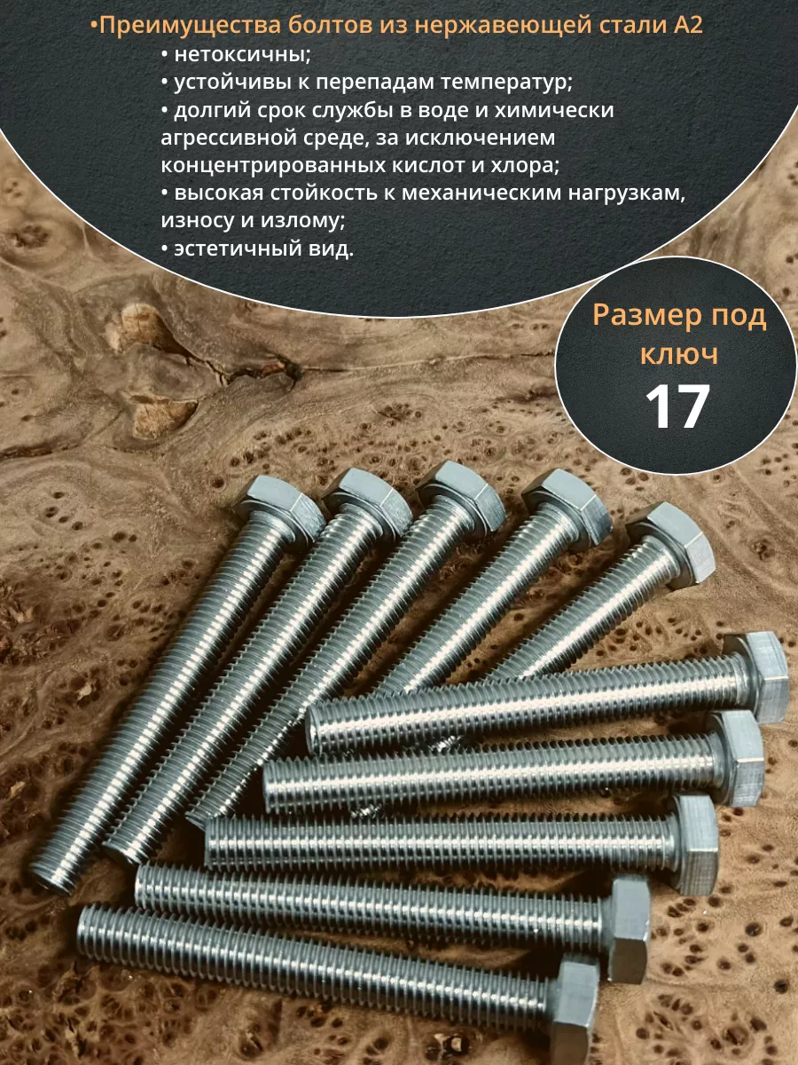Болт нержавеющий 10х80 мм DIN933 10шт