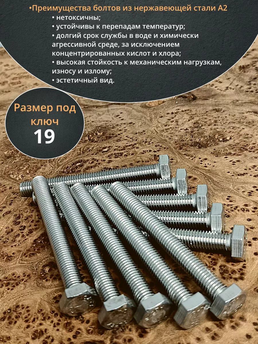Болт нержавеющий 16х80 мм А4 DIN933, 10 шт.