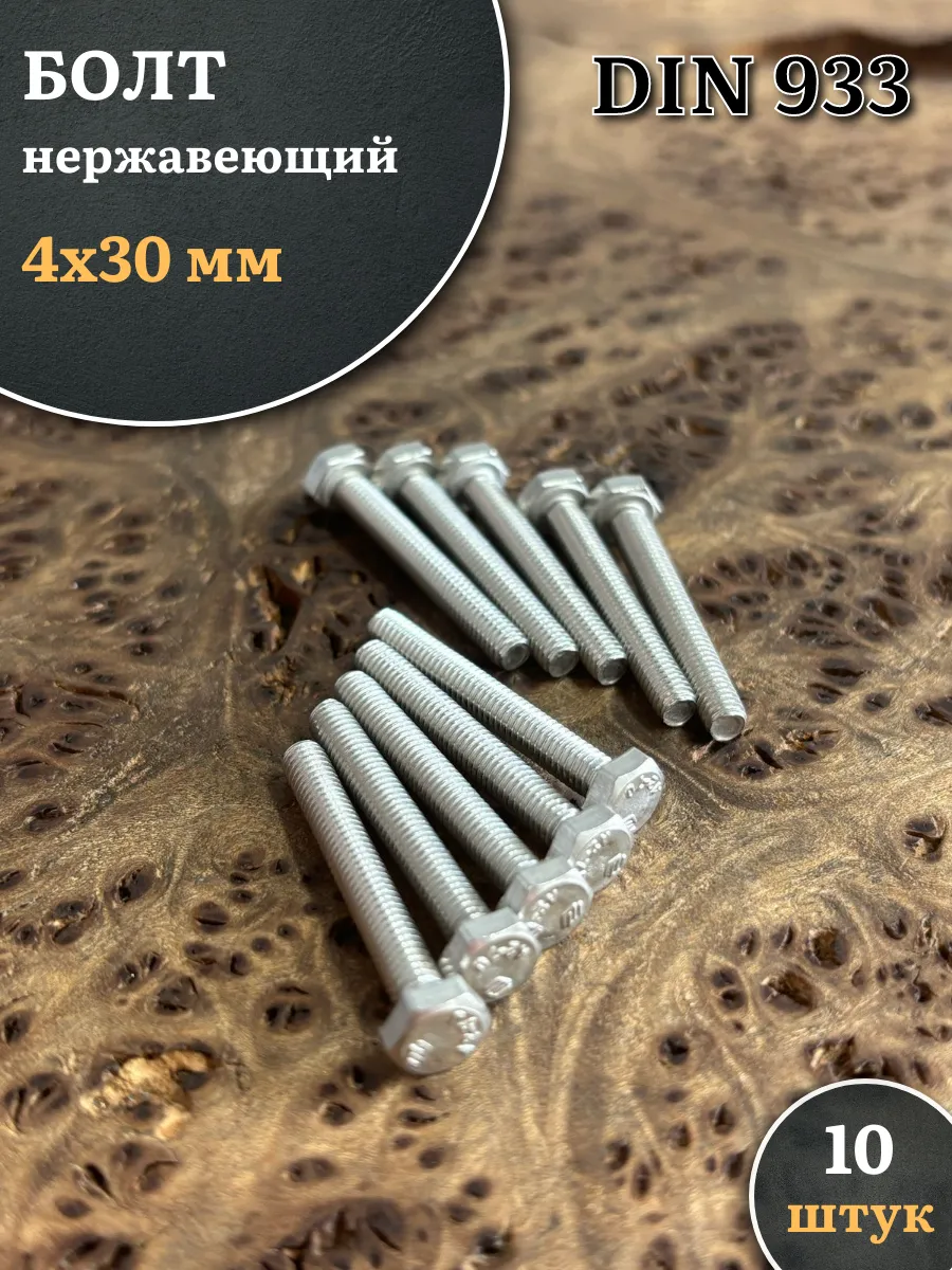 Болт нержавеющий 4х30 мм DIN933, 10 шт. бн430 1 шт.