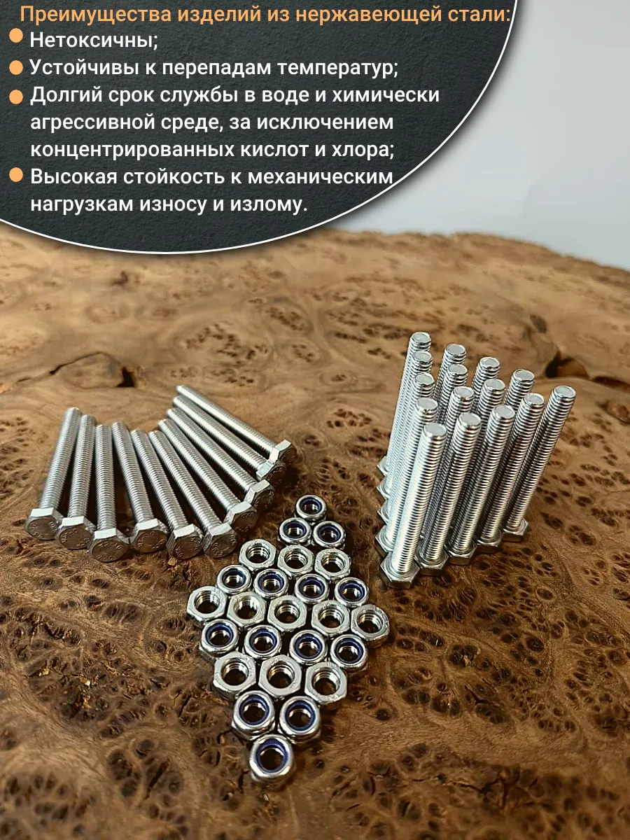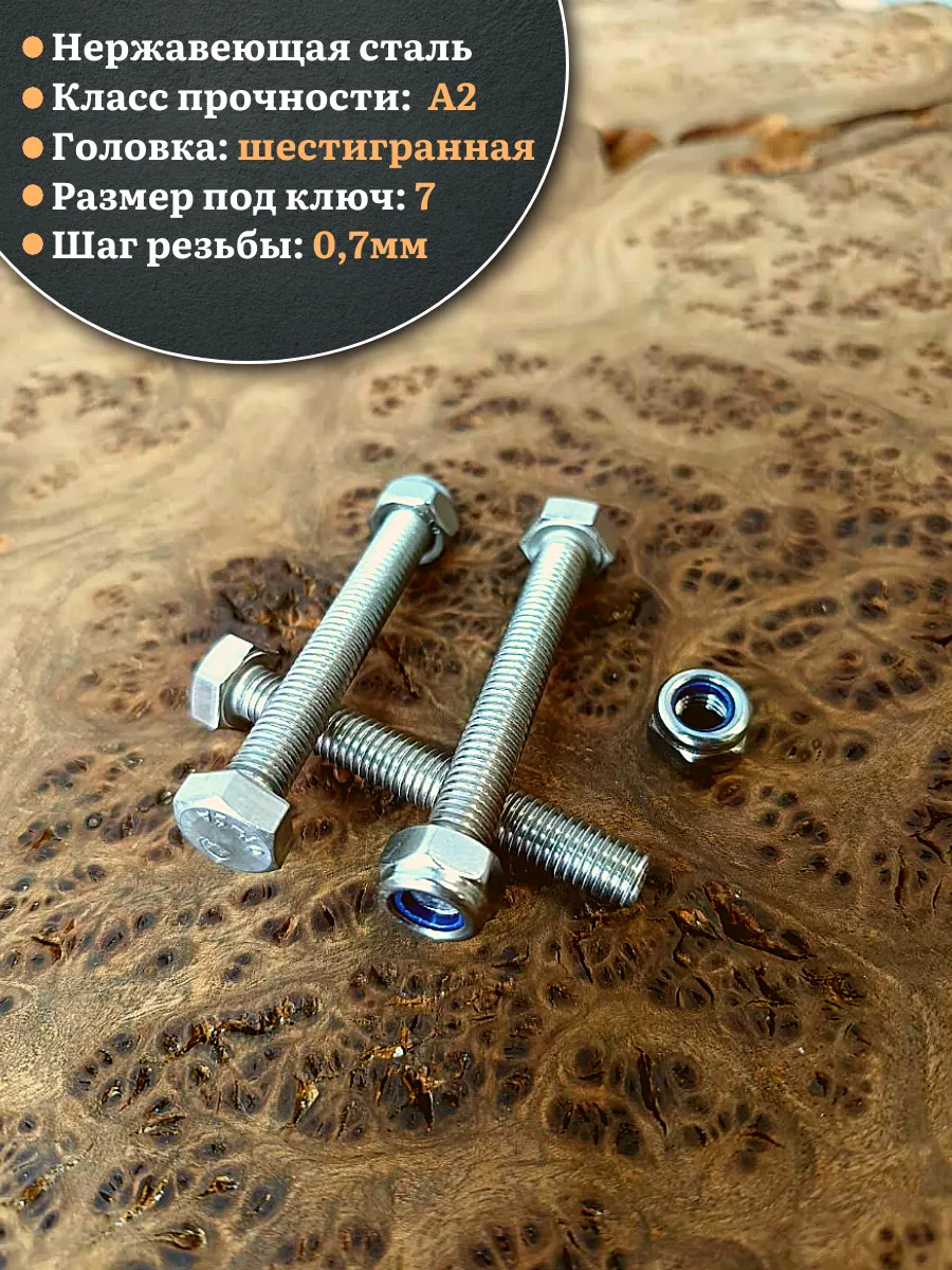 | Болт нержавеющий 4х50 мм DIN 933 со стоп гайкой , 50 шт. | 11546 | 1 шт. |