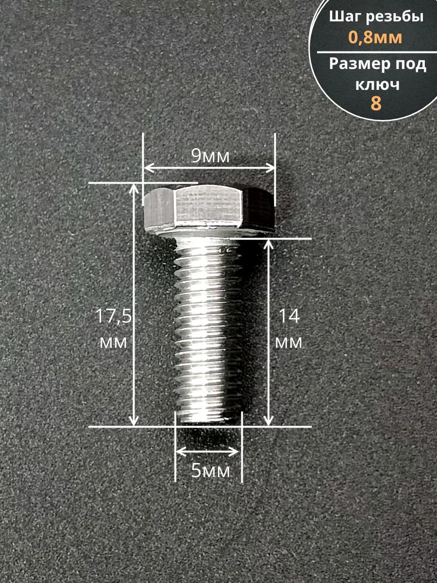Материалом для болта служит нержавеющая сталь класса A2. У изделия есть цилиндрический стержень c полной резьбой М5 и шестигранная головка. Шляпка передает крутящий момент от ключа к крепежу при завинчивании. Для создания прочных резьбовых соединений крепеж используется в комбинации с шайбой и гайкой или завинчивается в отверстия с нарезанной резьбой. Чтобы исключить электрохимическую коррозию, шайбы с гайкой делаются из коррозионно-устойчивой стали либо нейтральных полимерных материалов.