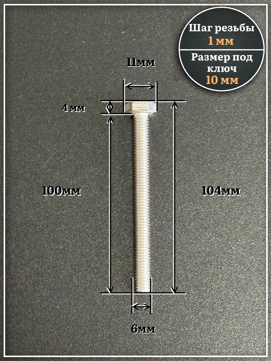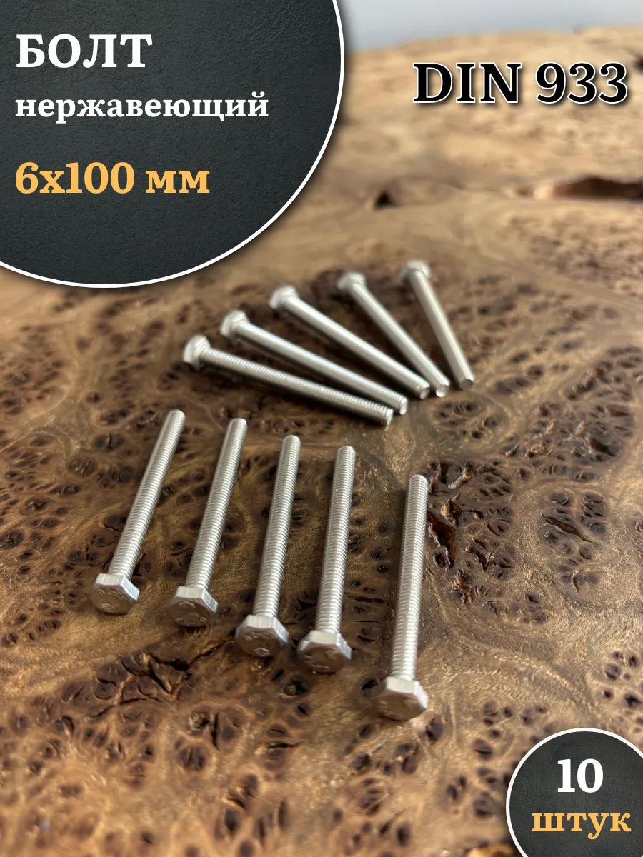 Болт нержавеющий 6х100 мм DIN933, 10 шт.