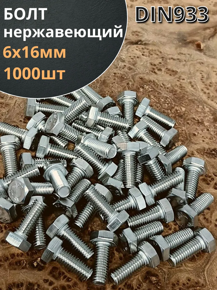 Болт нержавеющий 6х16 мм DIN933 1000шт