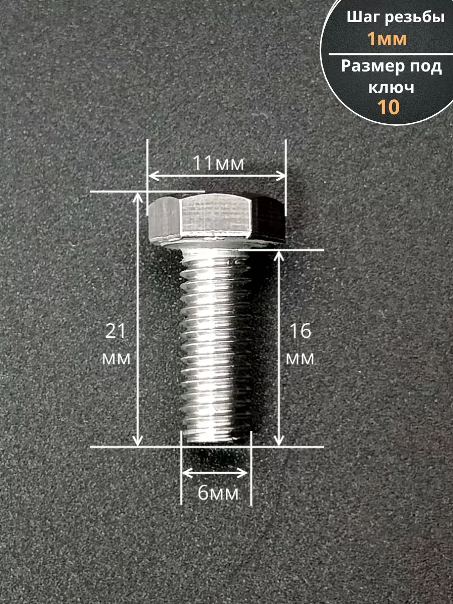Болт нержавеющий 6х16 мм DIN933 10шт АС1300601693D07 1 шт.