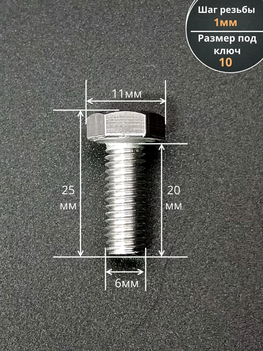 Болт нержавеющий 6х20 мм DIN933 10шт АС1300602093D07 1 шт.