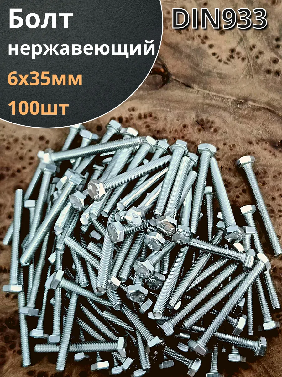 Болт нержавеющий 6х35 мм DIN933 10шт АС1300603593G07 1 шт.