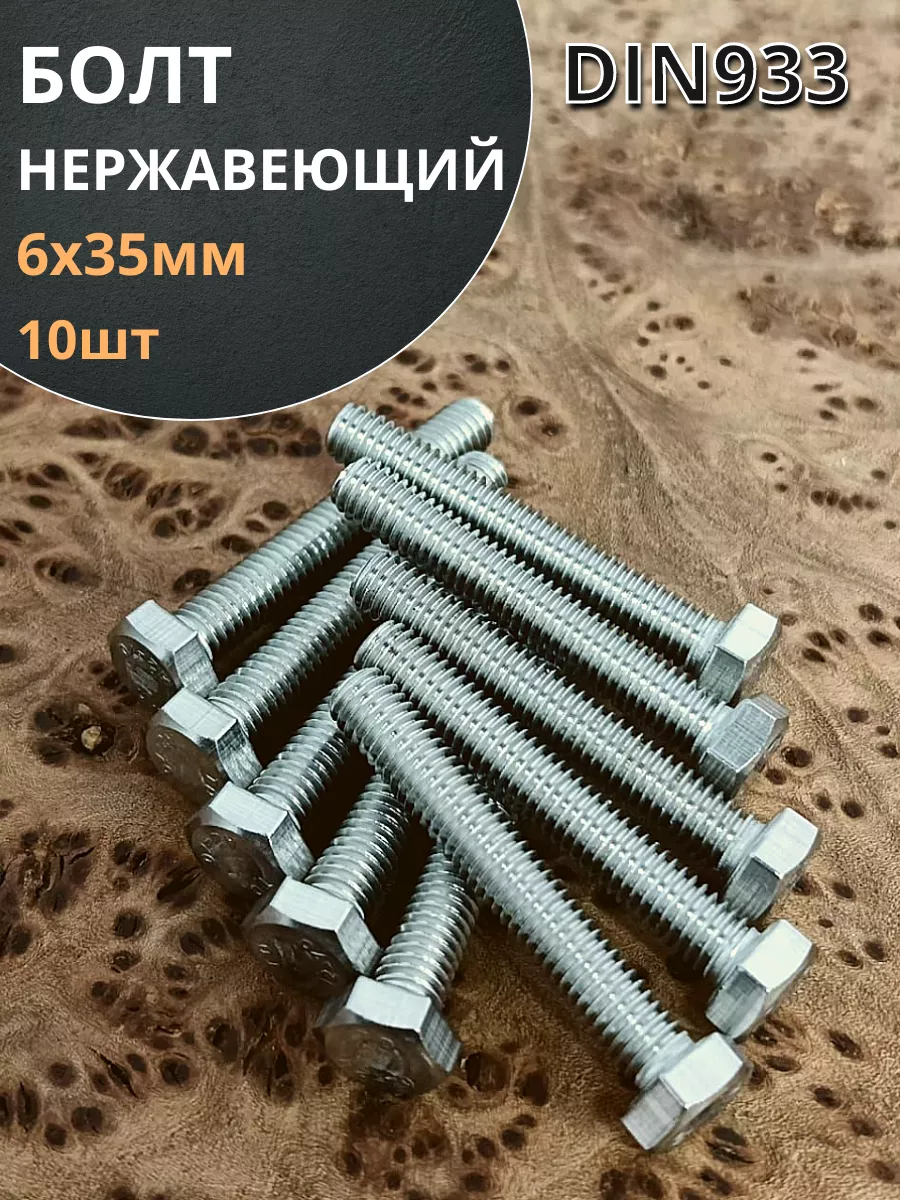Болт нержавеющий 6х35 мм DIN933 10шт