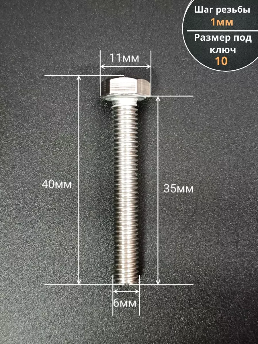 Болт нержавеющий 6х35 мм DIN933 10шт АС1300603593G07 1 шт.