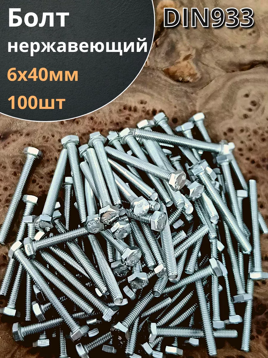 Болт нержавеющий 6х40 мм DIN933 100шт АС1300604093G07ф100 1 шт.