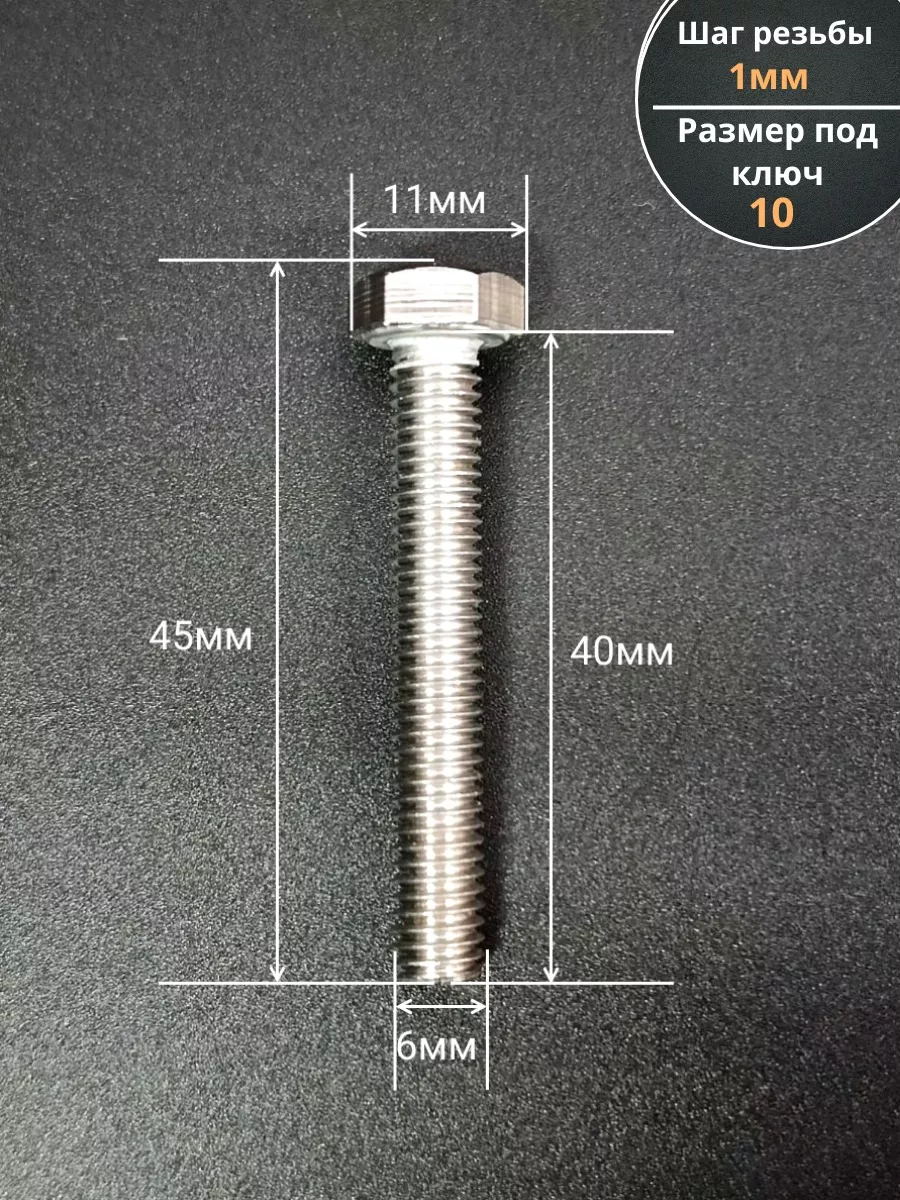 Болт нержавеющий 6х40 мм DIN933 10шт АС1300604093G07 1 шт.