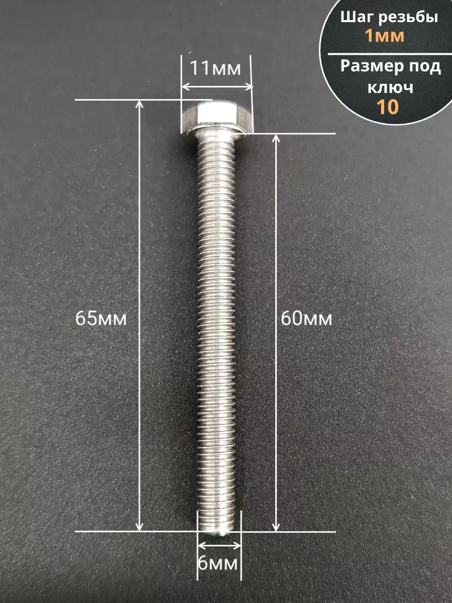 Болт нержавеющий 6х60 мм DIN933 10шт АС1300606092G07 1 шт.