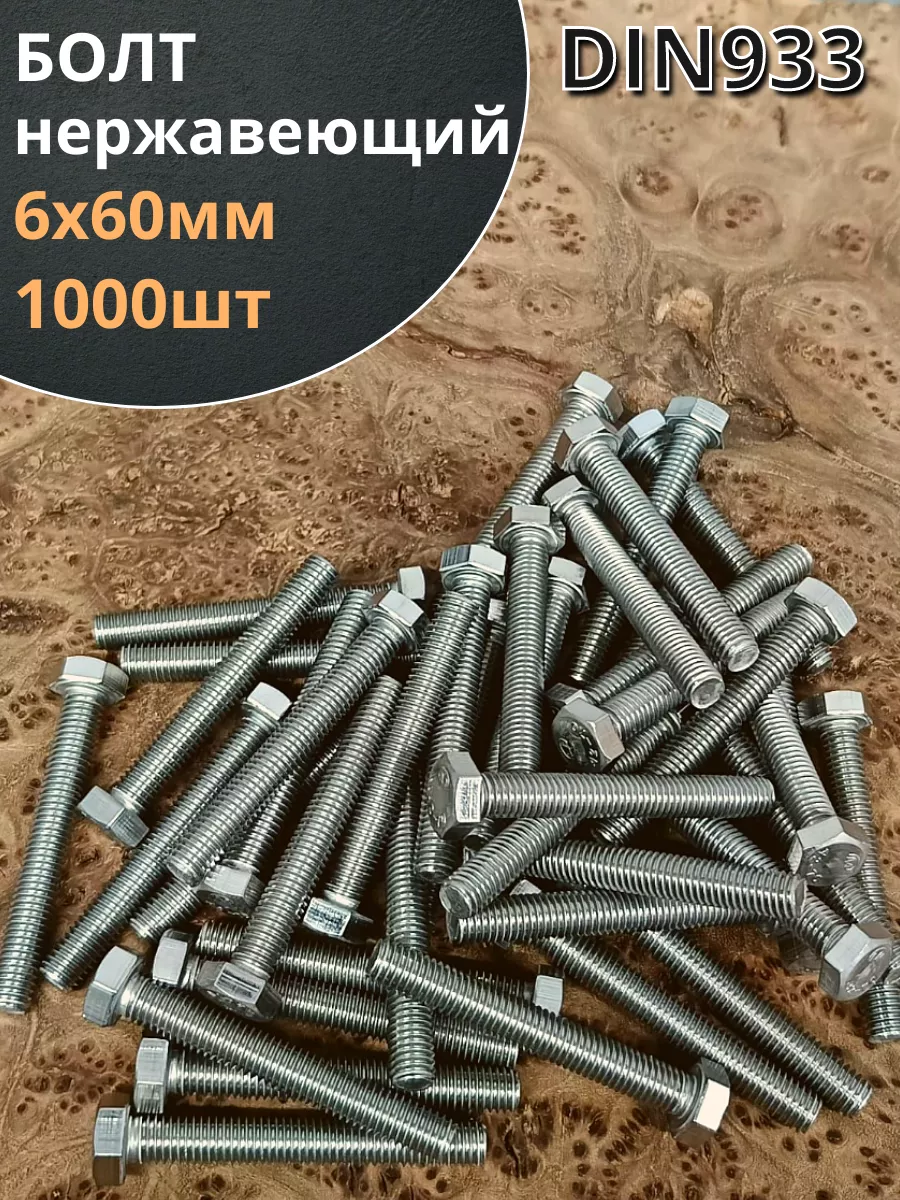 Болт нержавеющий 6х60 мм DIN933 1000шт