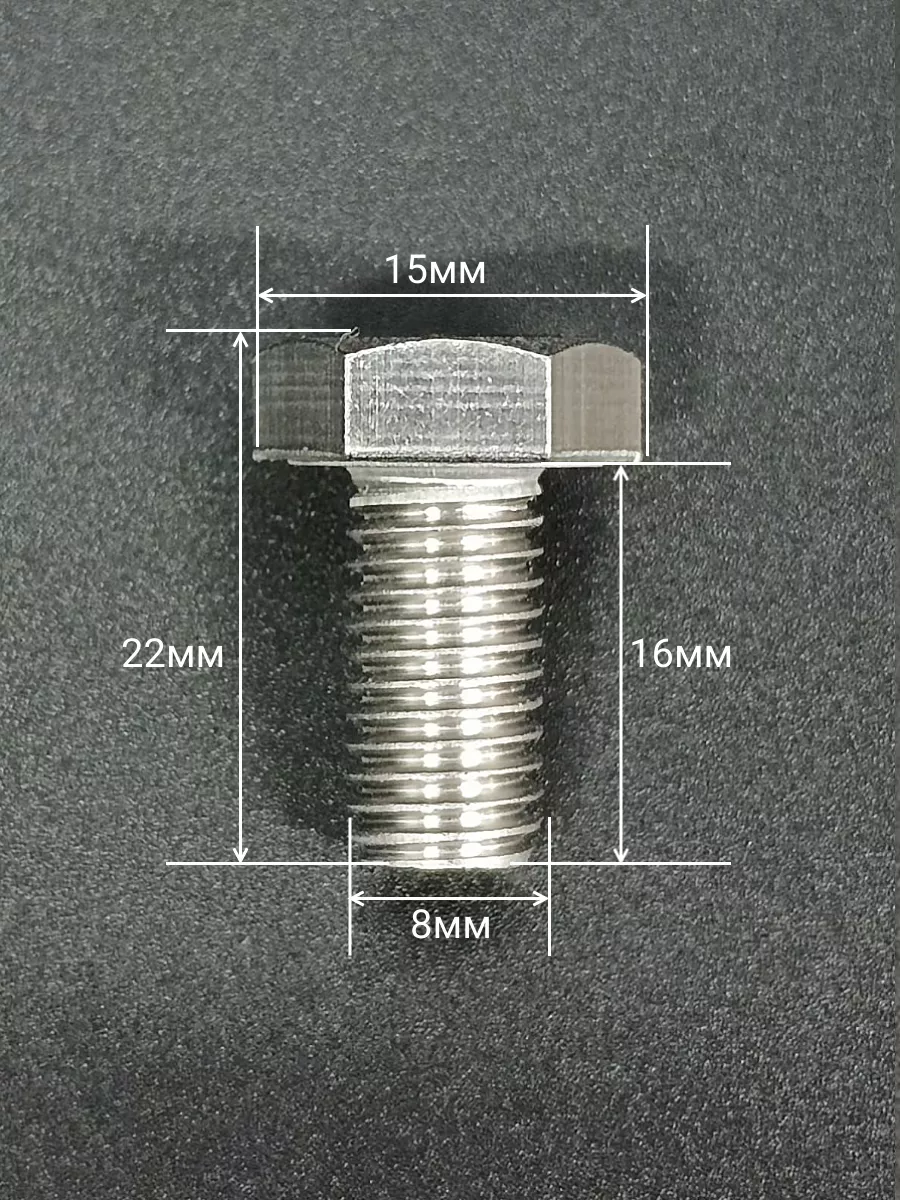 Материалом для болта служит нержавеющая сталь класса A2. У изделия есть цилиндрический стержень c полной резьбой М8 и шестигранная головка. Шляпка передает крутящий момент от ключа к крепежу при завинчивании. Для создания прочных резьбовых соединений крепеж используется в комбинации с шайбой и гайкой или завинчивается в отверстия с нарезанной резьбой. Чтобы исключить электрохимическую коррозию, шайбы с гайкой делаются из коррозионно-устойчивой стали либо нейтральных полимерных материалов.