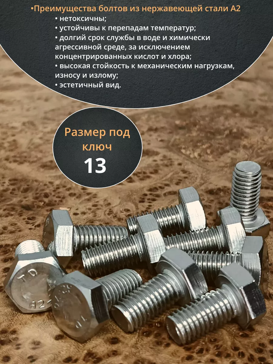 Нержавеющая сталь данной марки повышает прочность болта, который выдерживает динамические усилия и вибрацию. Изделие монтируют в помещениях и вне их. Крепеж имеет практически неограниченный ресурс работы, на который не влияет воздействие воды и изменений температуры воздуха.