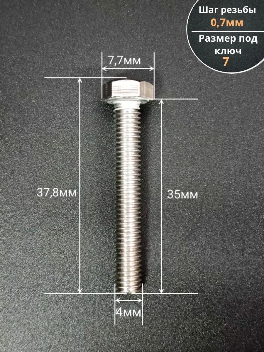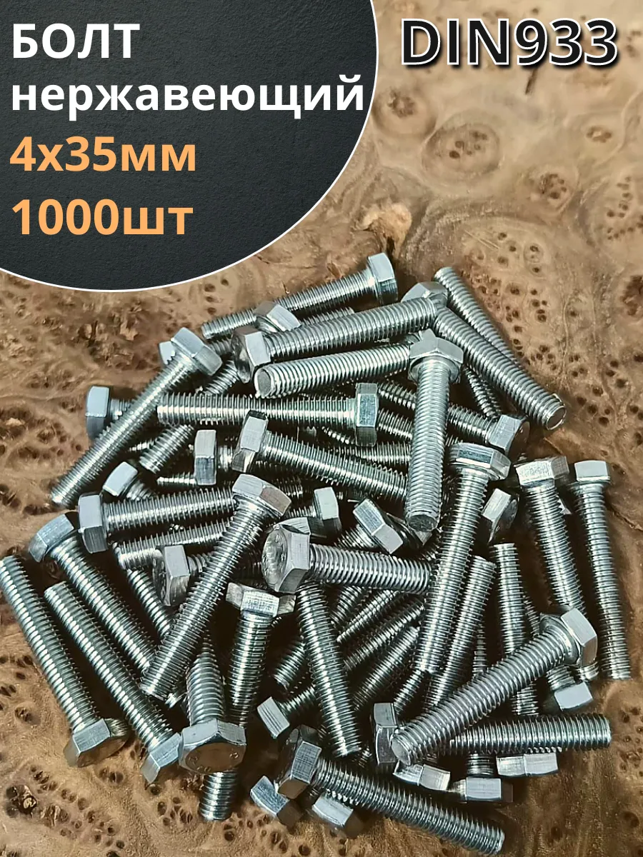 Болт нержавеющий М4х35 мм DIN 933 , 1000 шт.